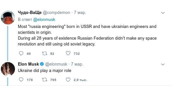 В ответ глава SpaceX написал: «Украина действительно сыграла основную роль».